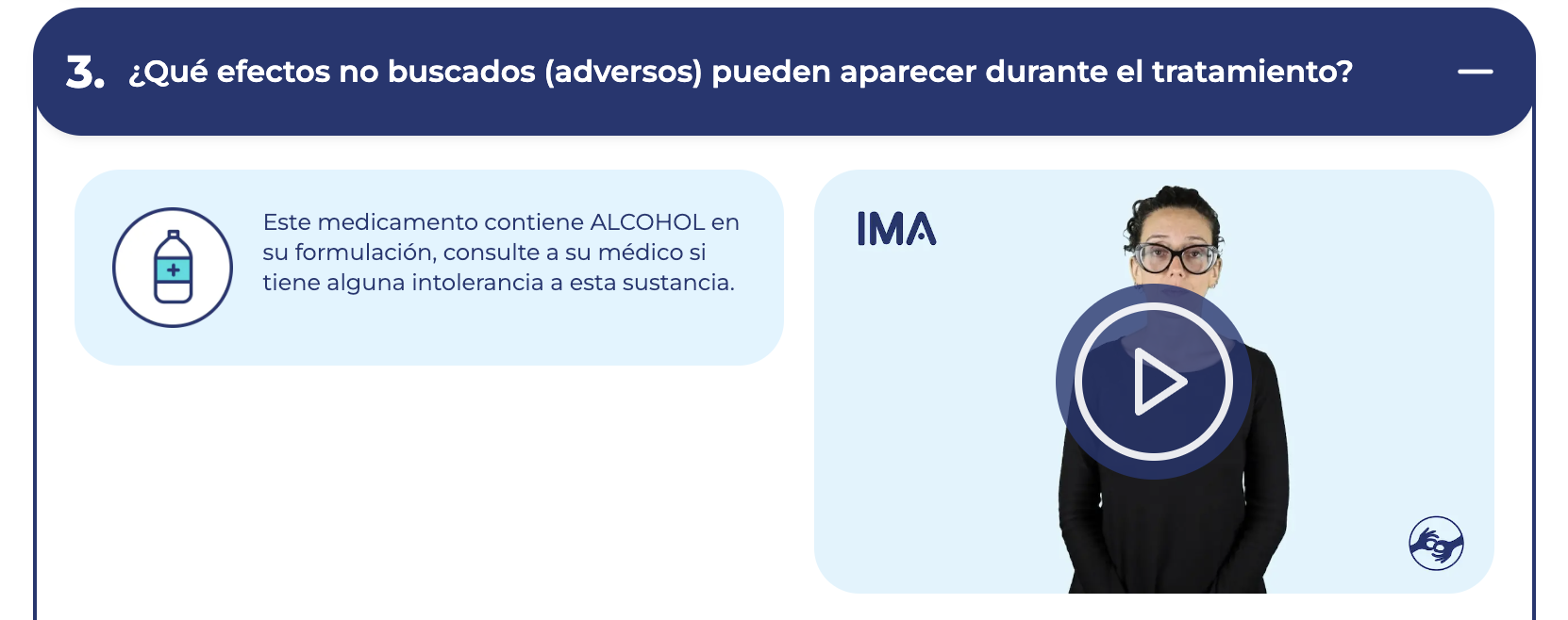 IMA significa INFORMACIÓN del MEDICAMENTO ACCESIBLE.